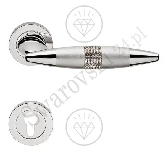 O dynamicznej linii klamka, przypominająca kubańskie cygaro. Dzięki setkom kryształów Swarovskiego i ich niepowtarzalnym właściwościom załamywania światła będzie synonimem luksusu na Twoich drzwiach. Część zewnętrzna rękojeści chromowana błyszcząca, natomiast część środkowa chromowana perłowa. Podkreślono w ten sposób blask kryształów ułożonych w dizajnie "mesh" - stąd nazwa klamki.